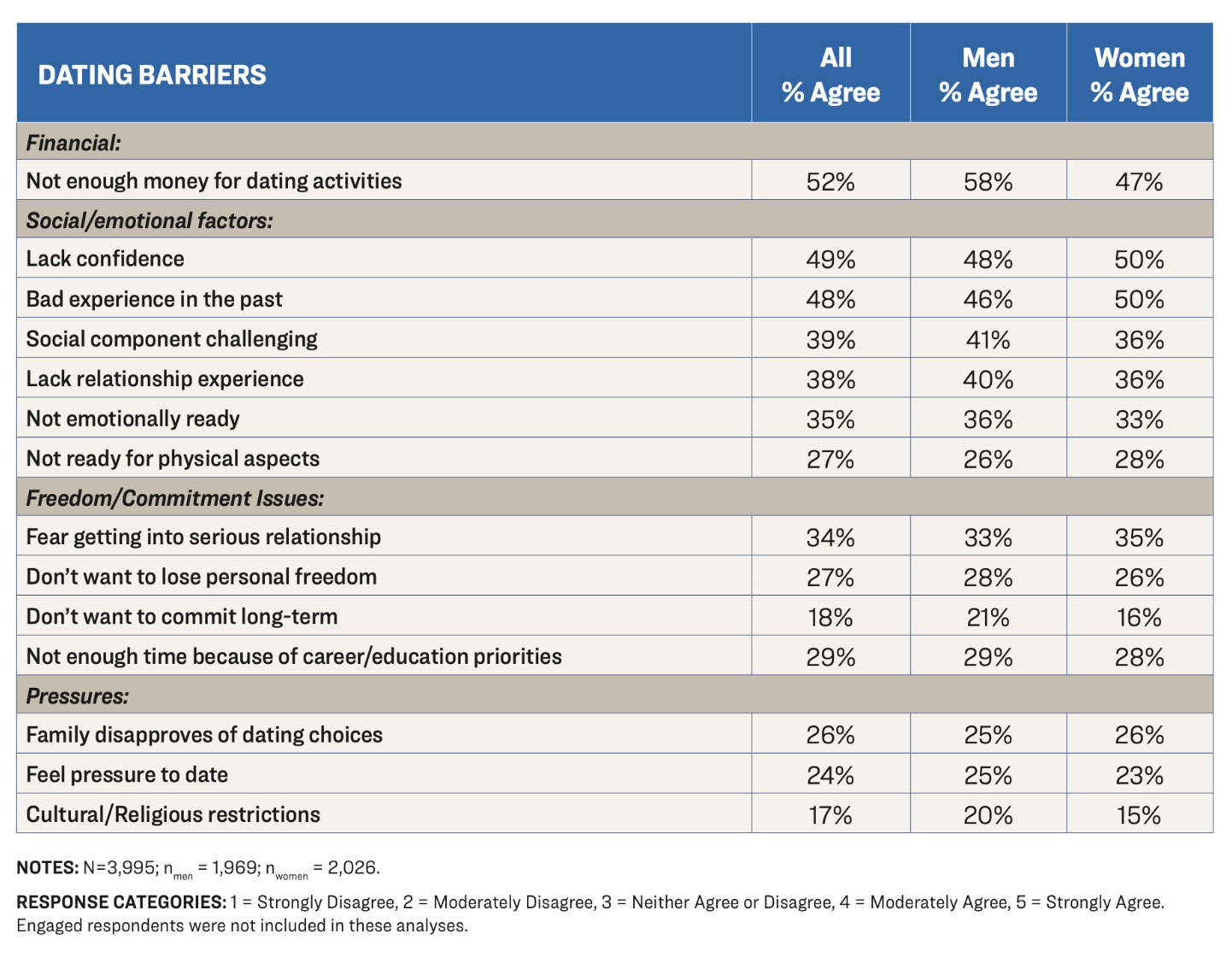 Well, there’s a clear confidence gap. When asked specifically about the biggest barriers to dating, nearly half of all young adults said a lack of confidence is a hurdle. It ranked just below not having enough money for dating activities, something we’ve covered for a while at The Up and Up.