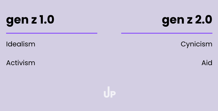 I’ve thought a lot about the shift that’s unfolding within gen z, from the idealism of gen z 1.0 to and a bubbling sense of cynicism within gen z 2.0 that percolates when it feels like nobody is listening and everything is getting worse.
