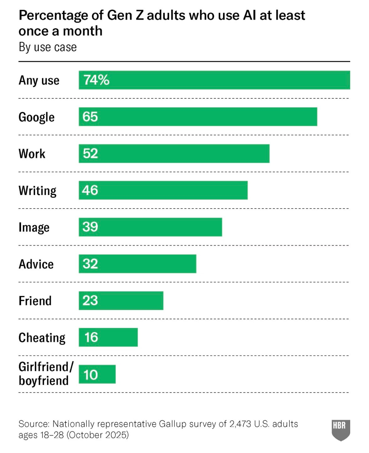 A decent number of Gen Z adults openly say they use AI for “cheating,” according to a new survey of young adults ages 18-28 exploring how Gen Z adults are thinking about AI and work, published in the Harvard Business Review.
