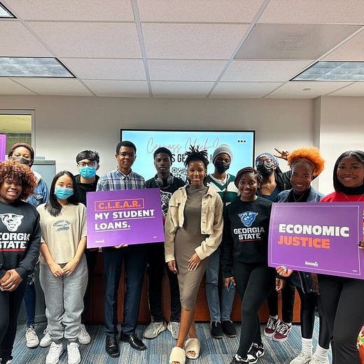 Between the general and Tuesday’s Senate runoff, Ames said, the group focused on 100k relational (peer to peer) and 50k conversations held in person on HBCU and state college campuses with 300 student organizers on campuses such as Spelman, Morehouse, Clark Atlanta, Georgia State, University of Georgia, and Georgia Tech.