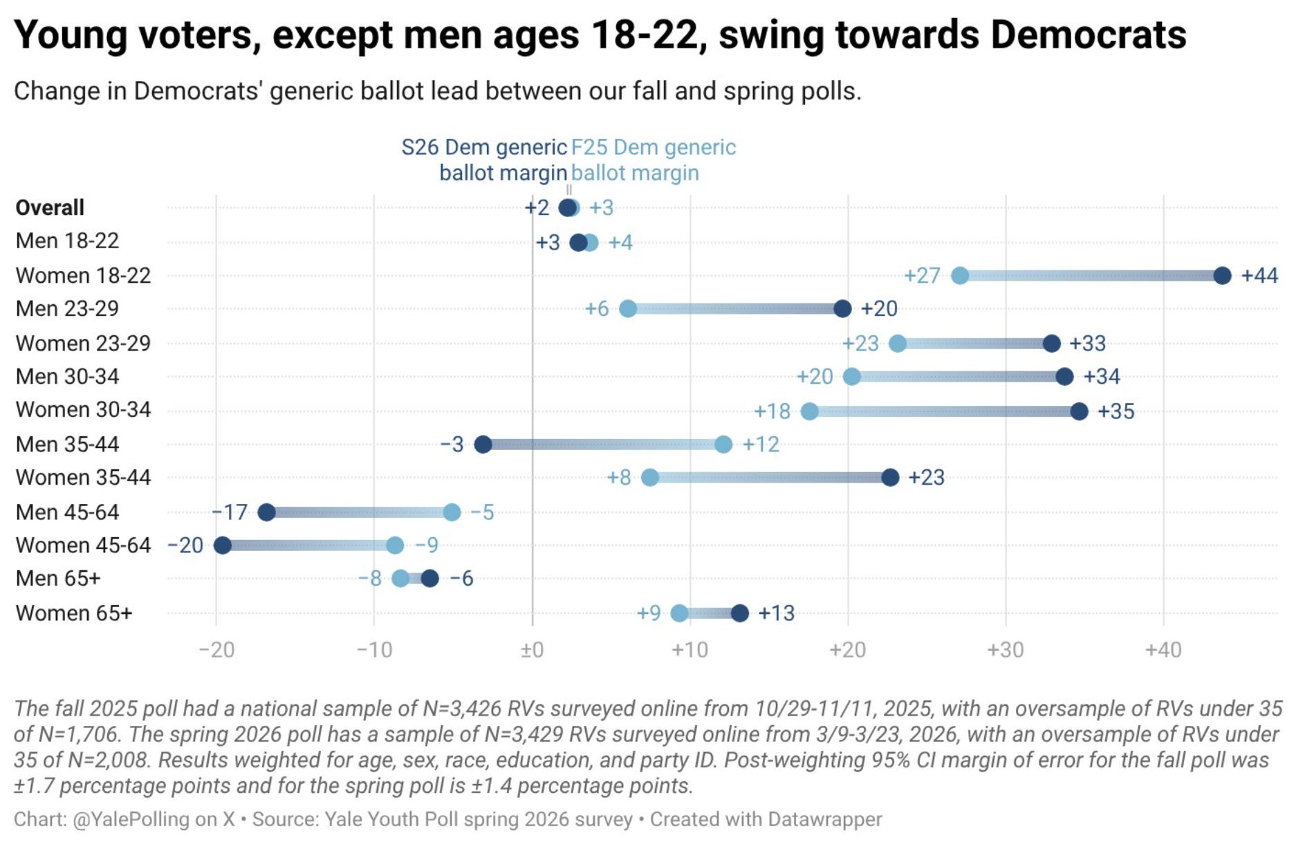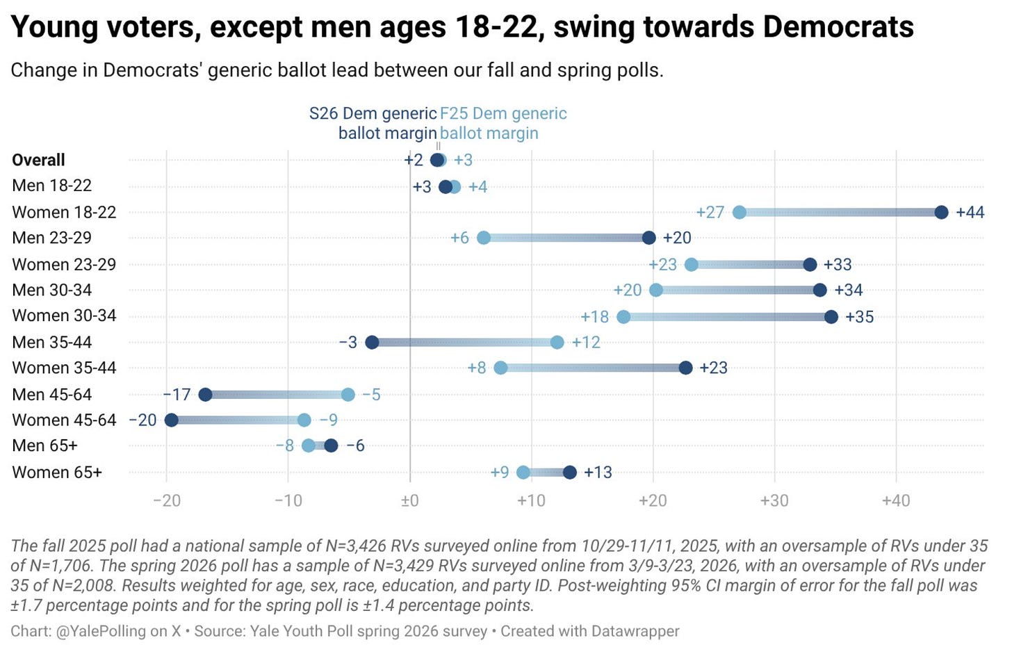 Among men ages 23-29 – Gen Z 1.0 – that advantage is +20.