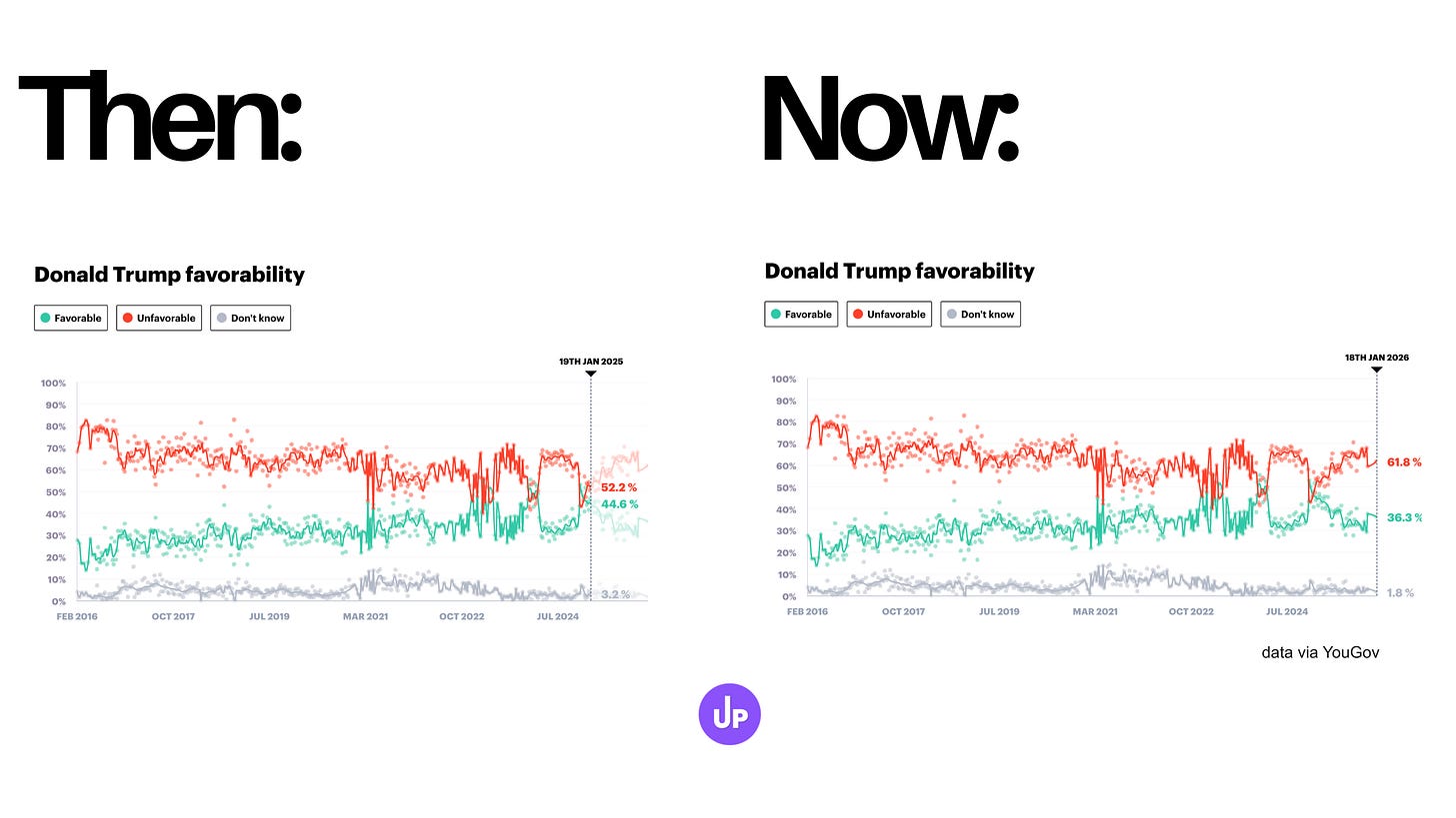 🚨 But it doesn’t mean young voters are suddenly swinging back toward Democrats, who are still largely operating in defense mode while Trump fumbles on the economy, sends ICE to cities across the country, and shakes up the geopolitical landscape (while threatening Greenland). In fact, many young people (and the internet) are growing impatient with strongly worded letters and social media posts that signal Democratic leaders’ frustration but fail to meet what feels like the urgency of the political moment.