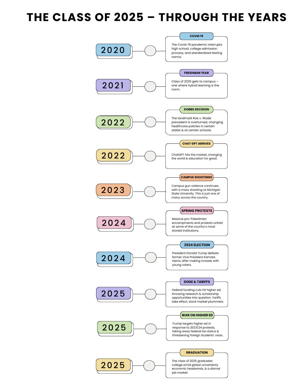 Now, the Class of 2025 is entering a world where the leader of the free world is publicly fighting with the wealthiest man in the world. This administration has imposed tariffs that sent the stock market spiraling. And spending cuts, especially in the world of government jobs, have changed the calculus around what students plan to do post-grad. To top it off, jobs that once required humans are increasingly automated.
